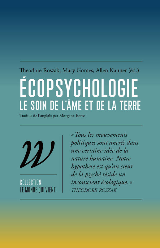 Le programme radical de l’écopsychologie repose sur le principe qu’il ne peut y avoir de changement écologique véritable sans une métamorphose de l’âme, et, dans une dialectique pleine de créativité et d’humilité, qu’il ne peut y avoir de transformation personnelle sans une révolution sociale et la guérison de la Terre, malade de la civilisation capitaliste occidentale. »